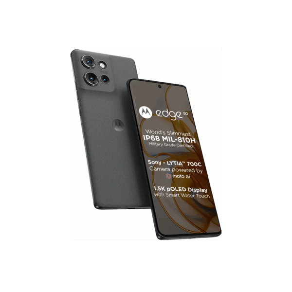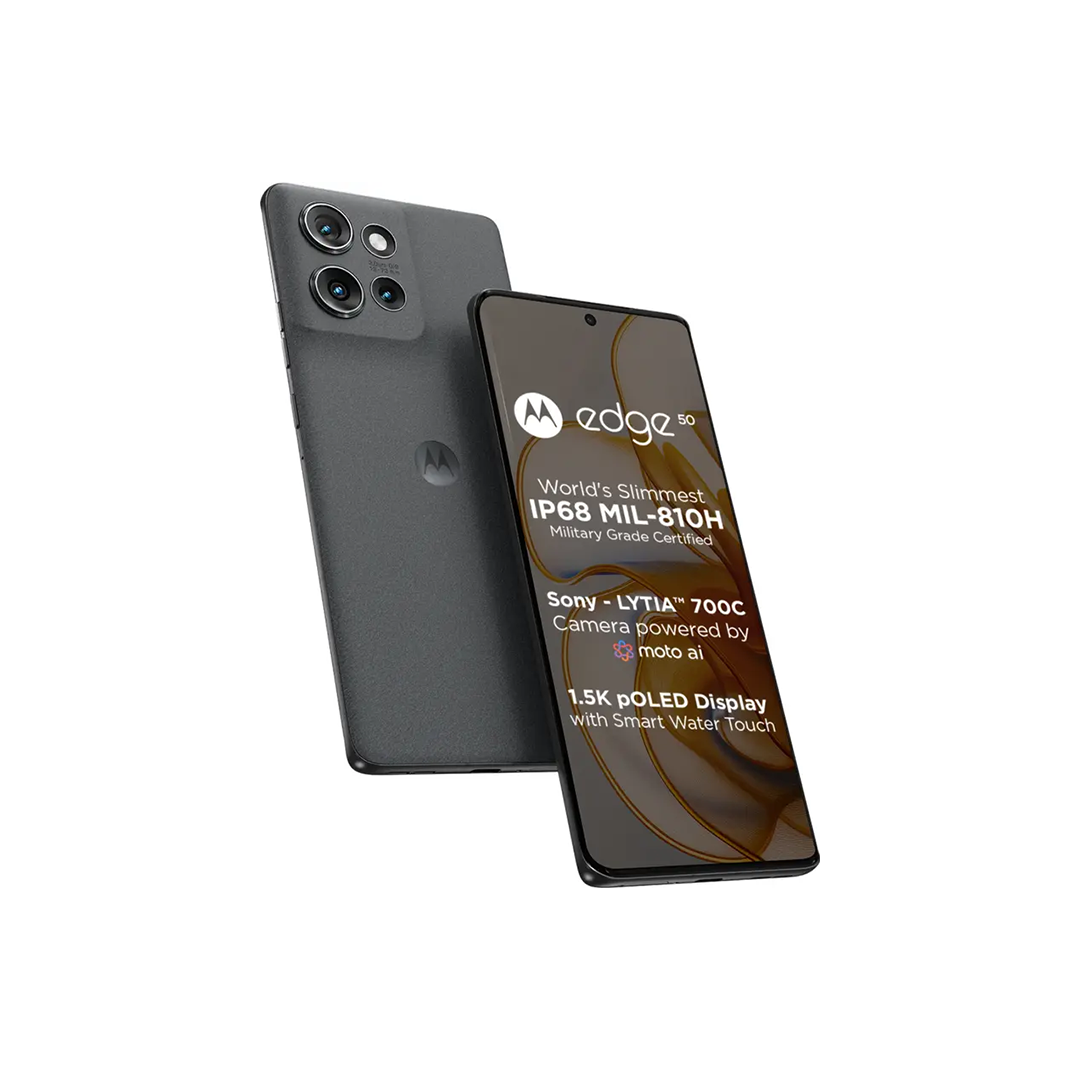 The Motorola Edge 50 meets military standards for durability, all while maintaining a sleek, perfectly balanced design. Crafted with a sense of harmony—featuring vegan leather and vegan suede finishes, and comfortably curved edges.