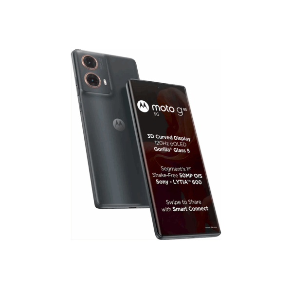Discover the Moto G85 5G, which has a revolutionary 3D Curved pOLED 120 Hz Display protected by Gorilla Glass 5 for remarkable longevity. With the 50 MP OIS Sony LYTIA 600 Camera system, you can take beautiful pictures in any kind of illumination. Utilise Smart Connect to share content with ease and make use of the built-in 12 GB RAM and 256 GB storage. Immersive sound is produced by its Dolby Atmos Dual Stereo Speakers, and its Snapdragon 6s Gen 3 engine guarantees lightning-fast 5G speeds over 13 bands. Android 14 delivers the newest advancements in mobile technology and security, with a 5000 mAh battery and 33 W TurboPower charging.