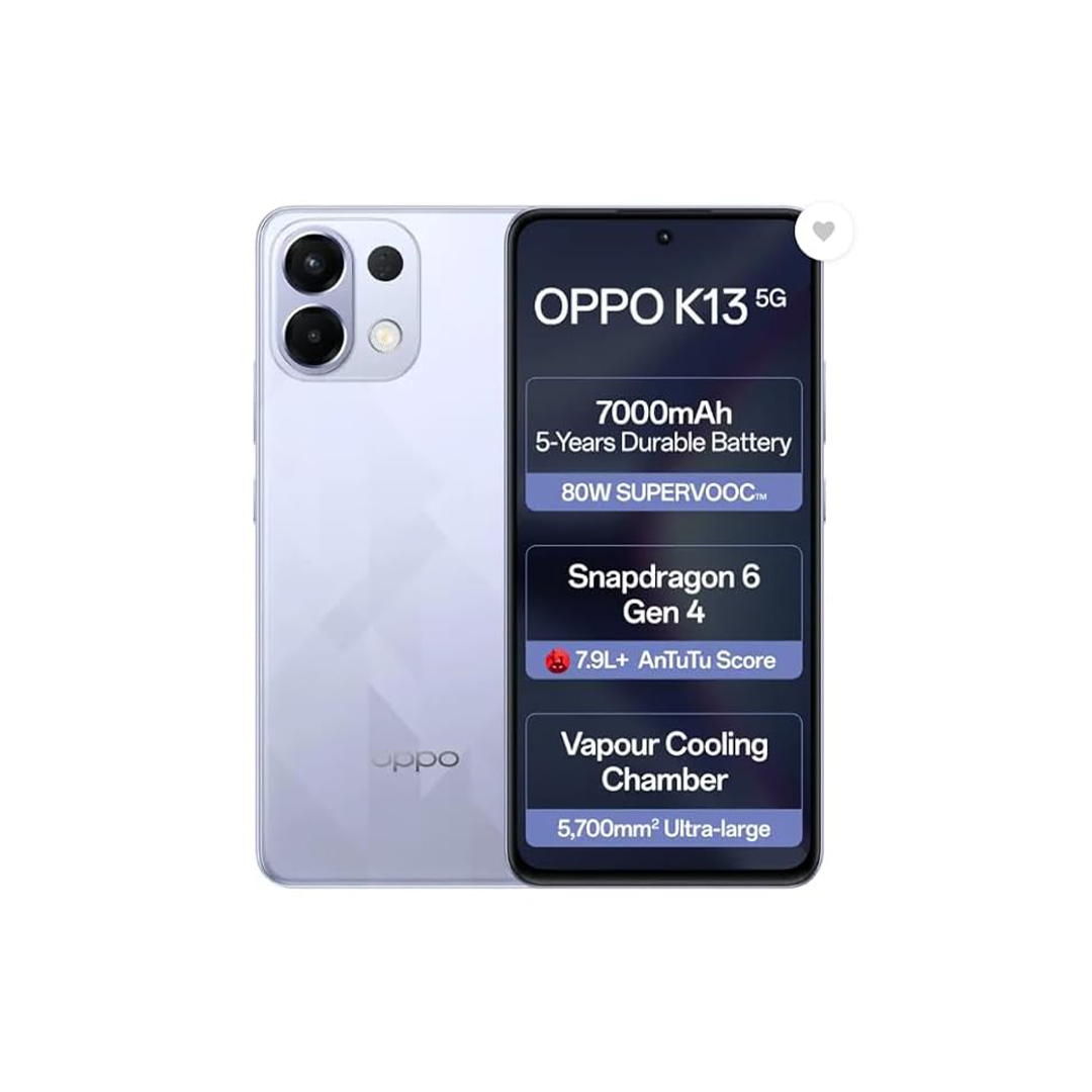 OPPO K13 5G with 7000mAh and 80W SUPERVOOC Charger In-The-Box (Icy Purple, 256 GB) (8 GB RAM)