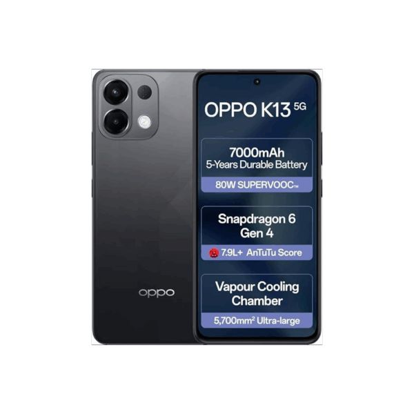 OPPO K13 5G with 7000mAh and 80W SUPERVOOC Charger In-The-Box (Prism Black, 128 GB) (8 GB RAM)